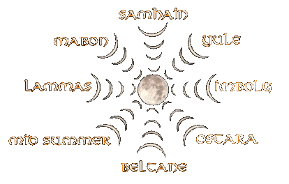 The origin of the word Sabbat has been disputed for many years. Some believe it came from the Jewish Sabbath. This is unlikely because the Jewish Sabbath is a weekly feast and Wicca pre-dates Jedaism. Others believe that it came from the words 'Sabaziuas' or 'Sabadius. These were the followers of Dionysus. Today Sabbats are the Wiccan holidays. These holidays follow an agricultural cycle. To celebrate a Sabbat, dancing, music, drinking and rituals take place. There are four major Sabbats: Samhain, Candlemas, Beltane and Lammas. The four minor Sabbats are Yule, Ostara, Midsummer and Maban. The Wheel of Sabbats is below. Wiccans also celebrate esbats. This is a minor celebrationsat every full moon.